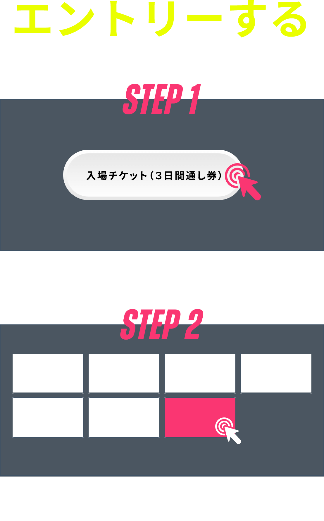 ※入場チケット買い忘れ防止のため、必ず入場チケット(3日間通し券)を購入してからstart.ggでのエントリー、「STEP2」にお進みください。