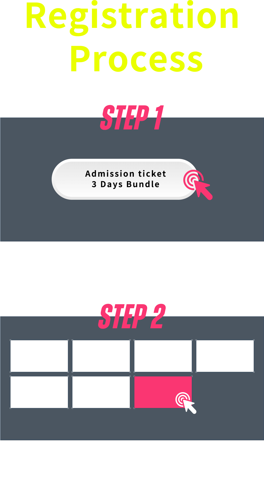 *To prevent forgetting to purchase the "Admission Ticket (3 Days Bundle)", please ensure you purchase it before completing your registration on start.gg (STEP 2).